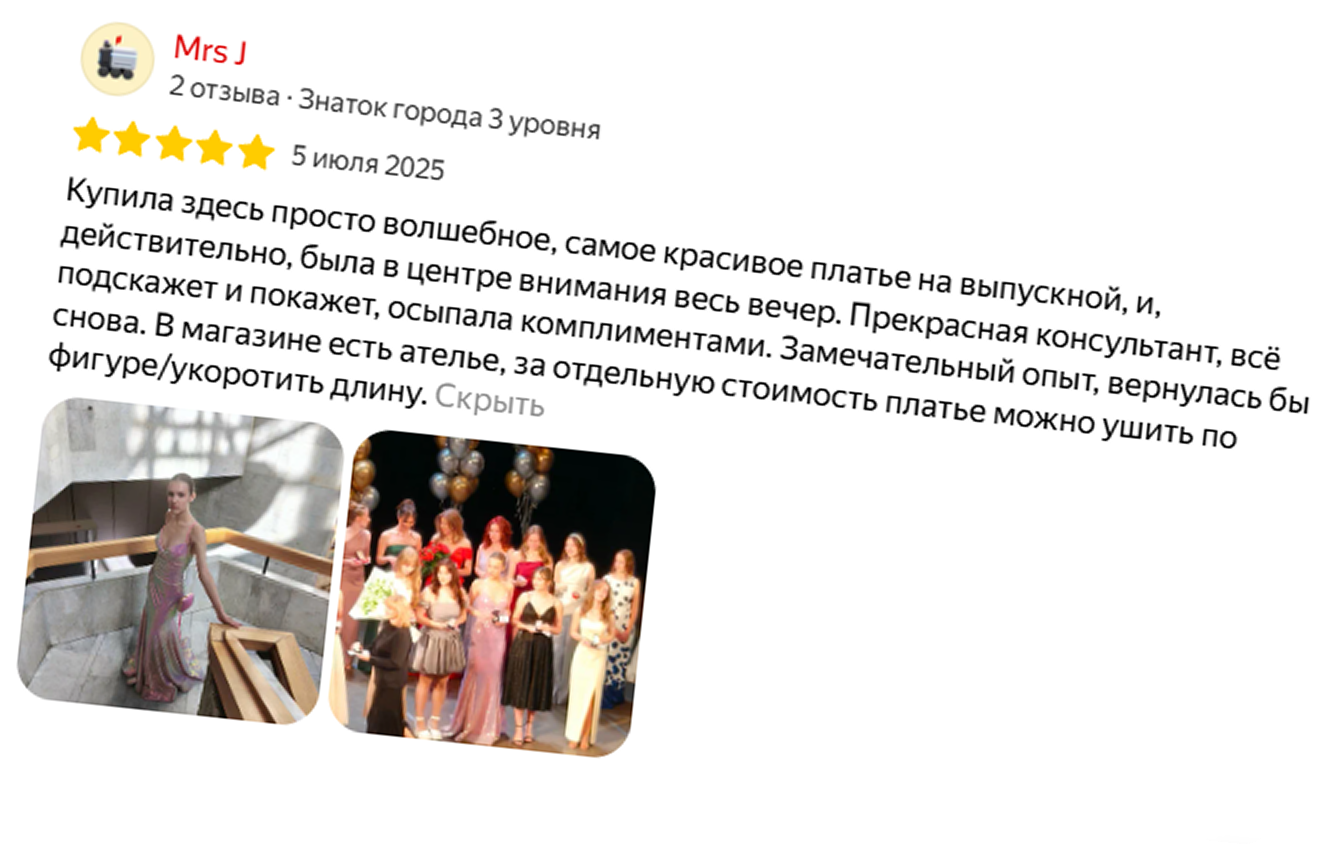 , потому что процесс примерки вечерних платьев проводится только в сопровождении